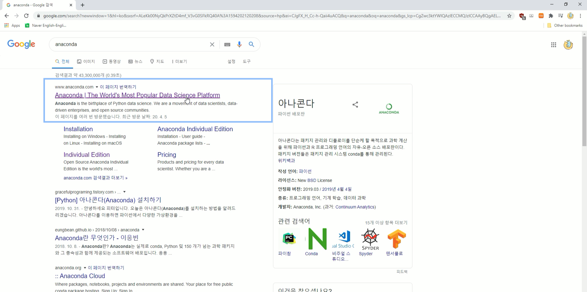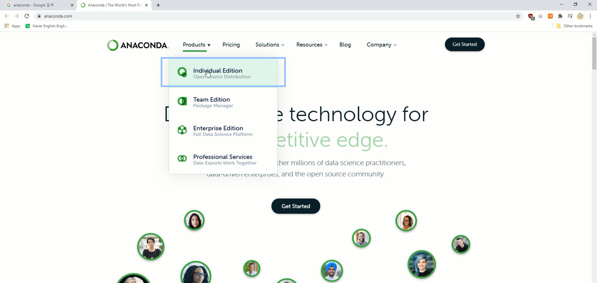 구글에 아나콘다를 검색하거나 혹은 www.anaconda.com에 접속합니다.