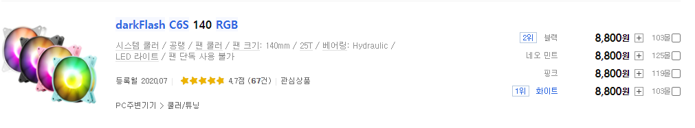 상단 팬(쿨러)를 구매하실 분들은 C6S 140mm 제품을 구매하시면 됩니다.